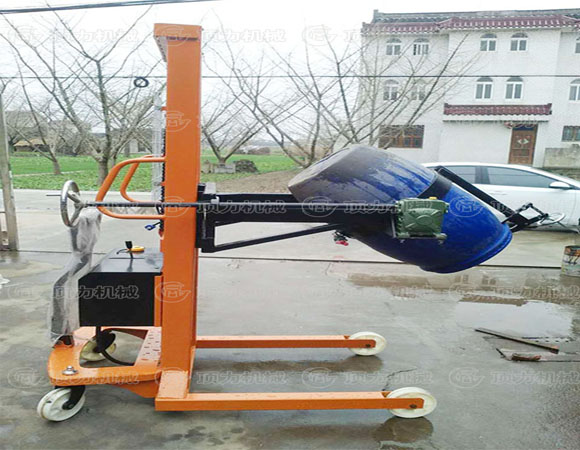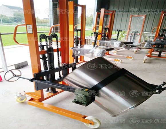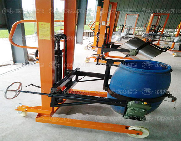 可傾式油桶搬運車(見圖一)設計新穎,結(jié)構(gòu)合理,使用方便,適用于工廠、車間、倉庫、油庫的油桶裝卸、搬運、堆垛。油桶提升后,可以在空中作大于180度的翻轉(zhuǎn),停留作業(yè),特別適用于化工、食品車間材料或配料使用,并可用于在汽車上進行油桶的裝卸和堆垛。