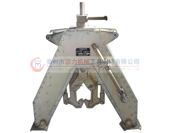 該產品主要由1架體、2扳桿、3提升絲杠、4長聯片、5短聯片、6細銷軸、7粗銷軸、8吊鉤、9軌頭調整桿、10傾斜調整桿、11支腳等組成。